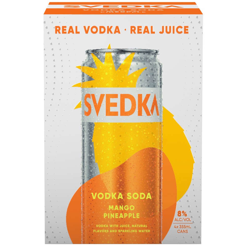 A perfect complement to SVEDKA's fearlessly original spirit, SVEDKA Mango Pineapple Vodka Soda Ready to Drink Cocktail combines real vodka and real juice* with bold flavors for a refreshing taste expe…