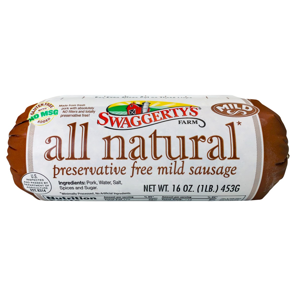 All natural mild 16oz premium sausage rolls are totally preservative free and made fresh daily using all natural spices and absolutely no artificial fillers. Minimally processed, gluten, & MSG free.