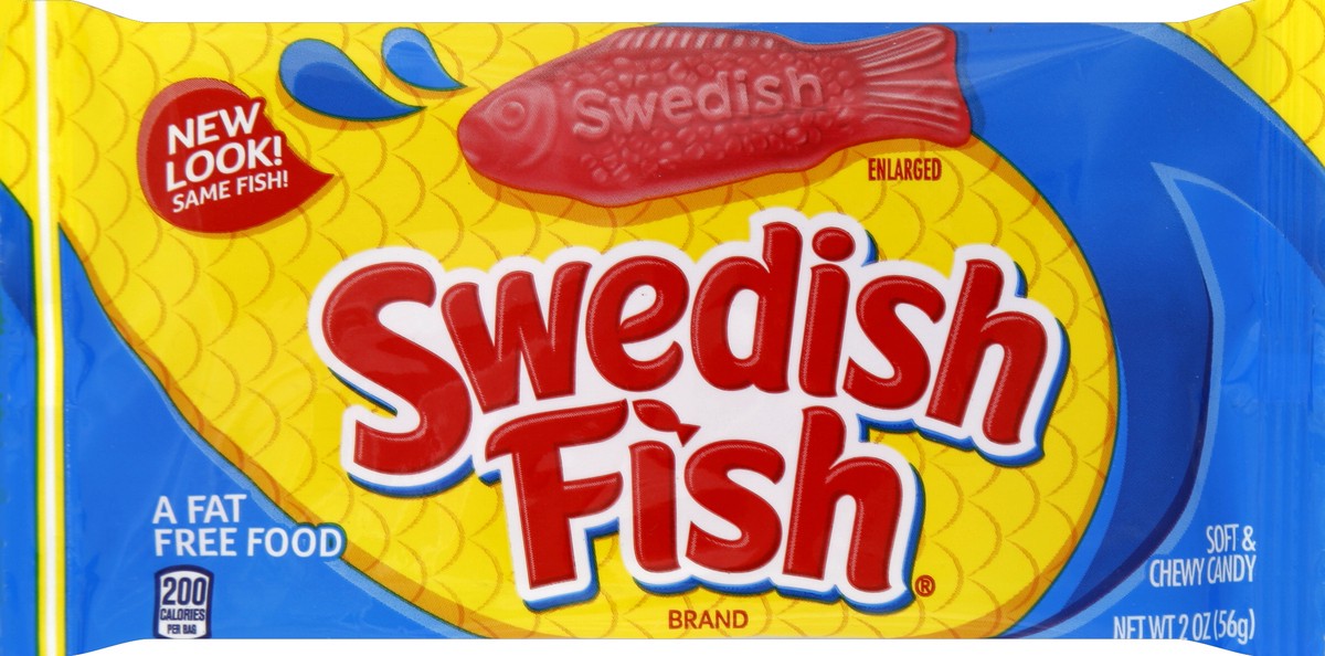 200 calories per bag. A fat free food. New look! Same fish! Questions? Call 1-800-524-2854. Am I getting red?! Swim with the fish on Instagram; Facebook; Snapchat. Made in Turkey.