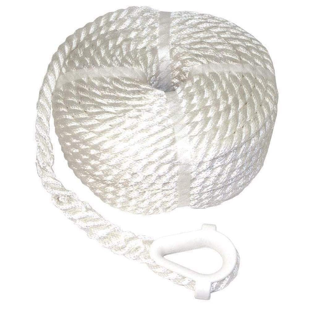 Tensile Strength 3240 LBS. 100% Premium, UV-protected, 3-Strand Twisted Nylon Anchor Line. Hand Splice Thimble. Rope Stores Wet.