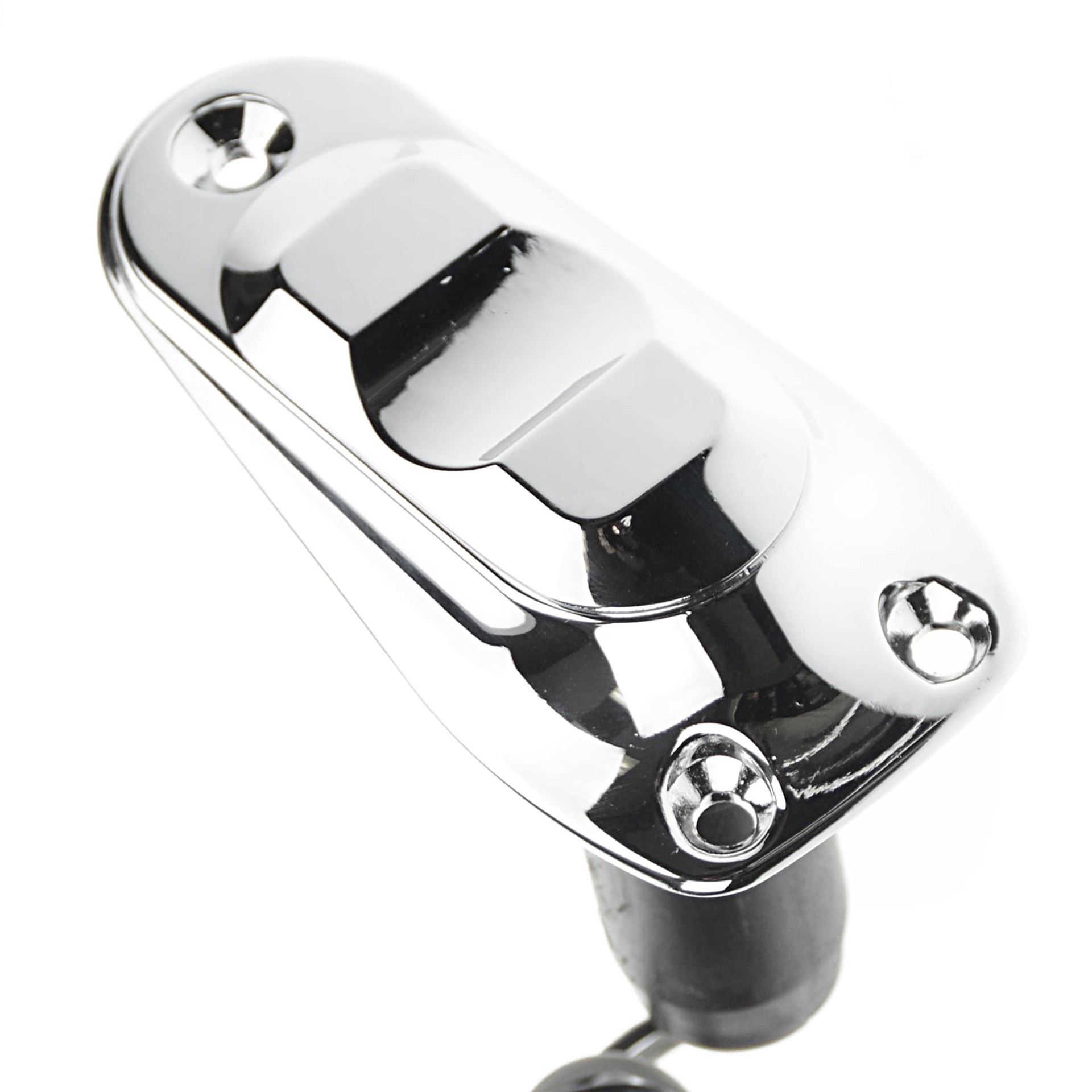 Standard 2-prong Plug-in Navigation Light Socket with spin top weather cover. Chrome Plated Zamak. Fits most all-round and pole bow light 2-prong navigation lights. Marine grade, tinned coated lead wi…
