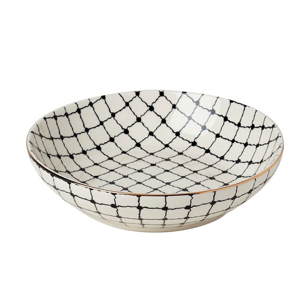 Serve your favorite meals in style with this dinner bowl from Tabletops Gallery. Featuring a grid pattern on both the outside and the inside of the bowl, it is sure to make any occasion elegant and el…