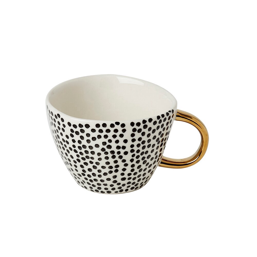 Savor your favorite coffee or tea in style with this 12.27-ounce mug from Tabletops Gallery. Featuring a fun dot pattern on the inside and outside of the mug and a gold handle, this mug feels elegant …