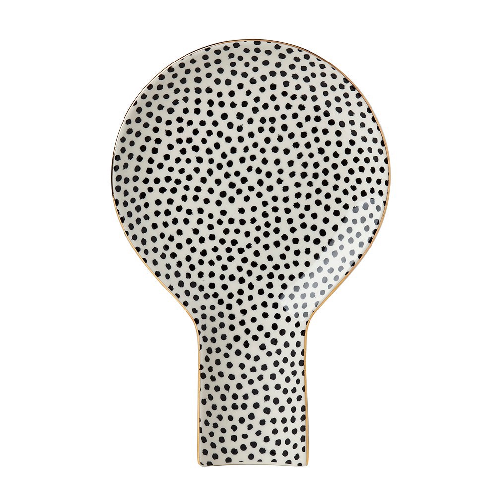 Keep your stove and counter neat and clean with this stoneware spoon rest from Tabletops Gallery. Featuring a large surface area, this spoon rest will hold any type of kitchen utensil. The dot pattern…