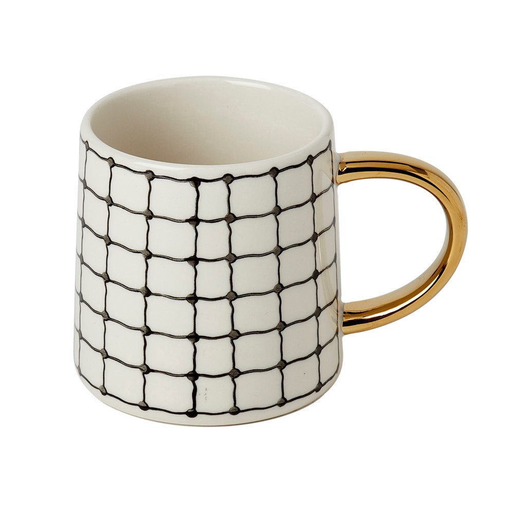 Savor your favorite coffee or tea in style with this 14.7-ounce mug from Tabletops Gallery. Featuring a fun grid pattern and a gold handle, this mug feels elegant and elevated.14.7-ounce capacity, 4.9…
