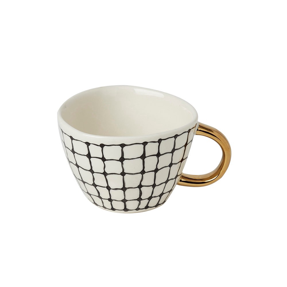 Savor your favorite coffee or tea in style with this 12.27-ounce mug from Tabletops Gallery. Featuring a fun grid pattern and a gold handle, this mug feels elegant and elevated.12.27-ounce capacity, 5…