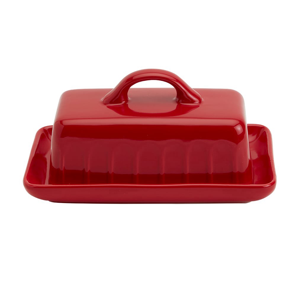 Tabletops Unlimited Mason Craft And More Stoneware Cafe Butter Dish - Red