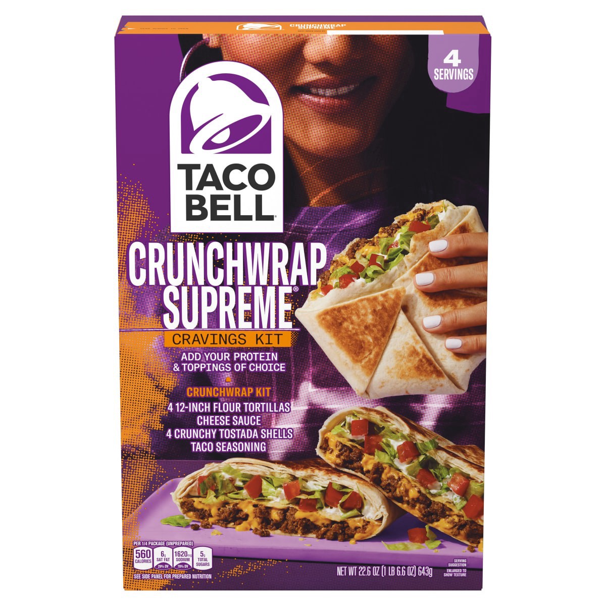 Cook what you crave with Taco Bell Crunchwrap Supreme Cravings Kits. Each DIY dinner kit contains four 12-inch flour tortillas, cheese sauce, 4 crunchy tostada shells and taco seasoning. Just add prot…