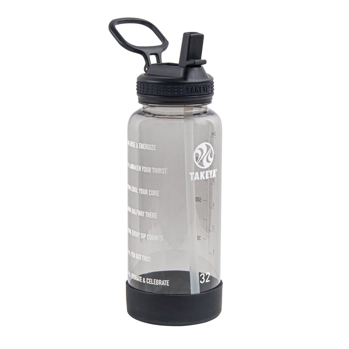 Takeya Tritan Motivational Water Bottle, 32 Oz, Stormy Black