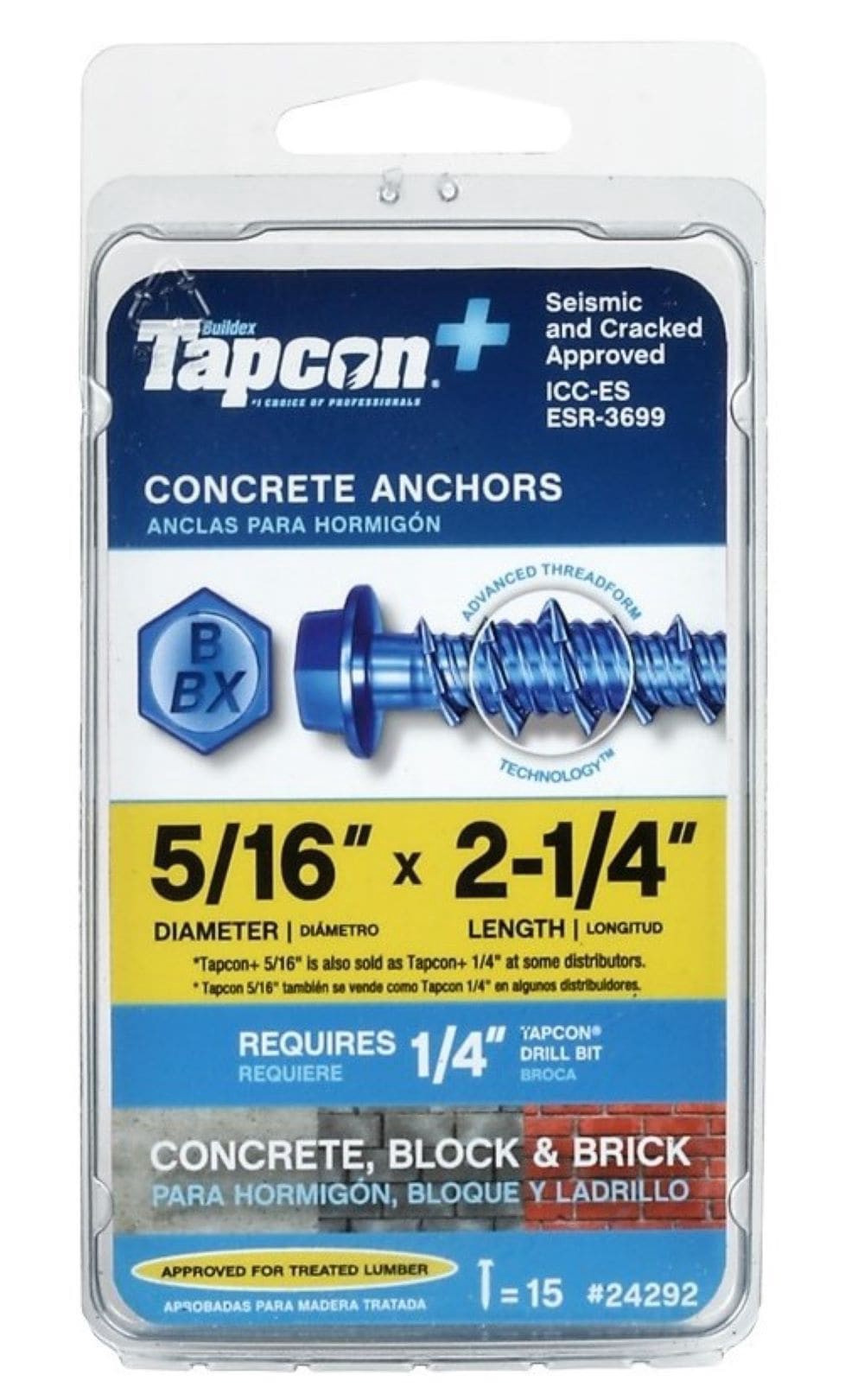 Tapcon + 5/16-in x 2-1/4-in Concrete Screw Anchors 15-Pack