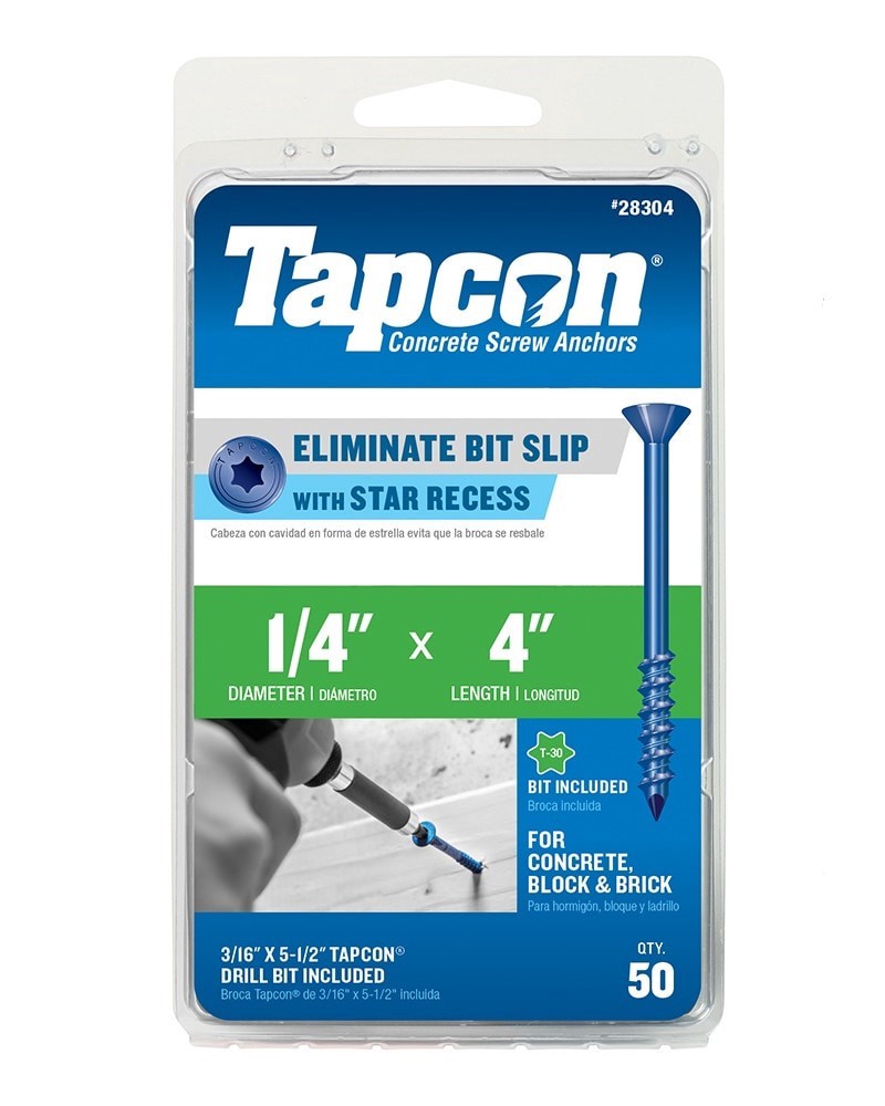 Marked so you can tell it's a genuine Tapcon. Resistant to anchor spinouts and head snaps. Climaseal coating for corrosion resistance + long-lasting quality. Designed for fastening into solid concrete…