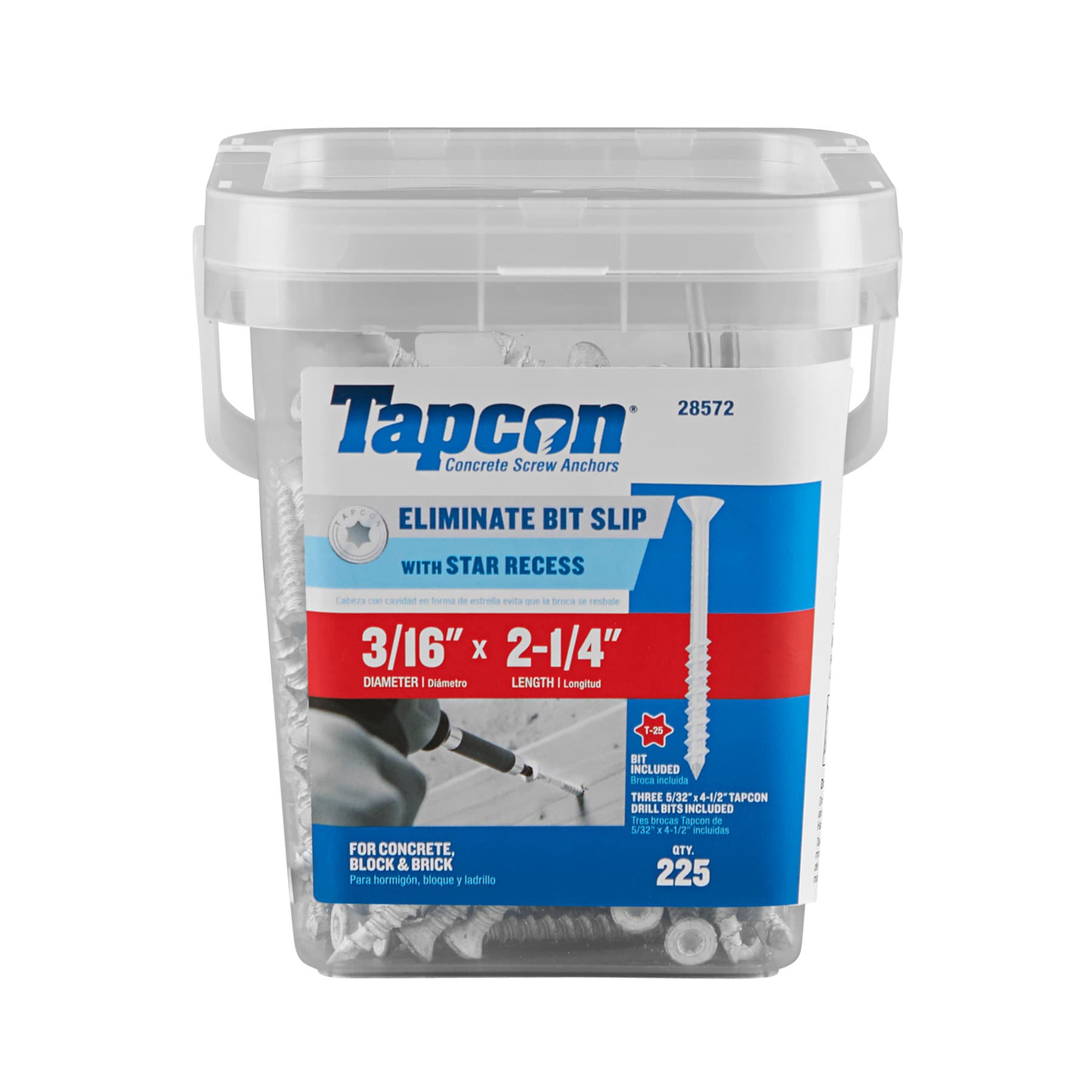 Marked so you can tell it's a genuine Tapcon. Resistant to anchor spinouts and head snaps. White Ultrashield finish that blends into light material and delivers long-lasting corrosion protection. Desiā¦