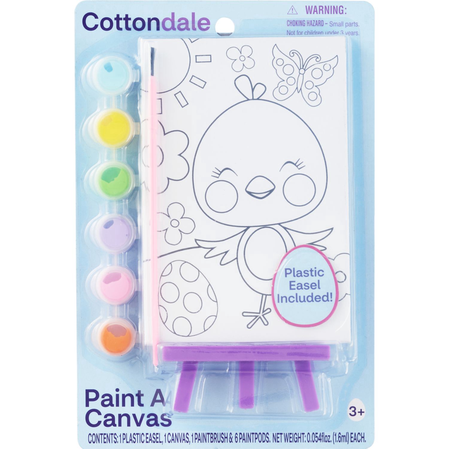 The plastic easel can be used to paint and display your creation