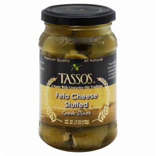 slide 1 of 1, Tassos Feta Cheese Stuffed Greek Olives, 12.36 oz