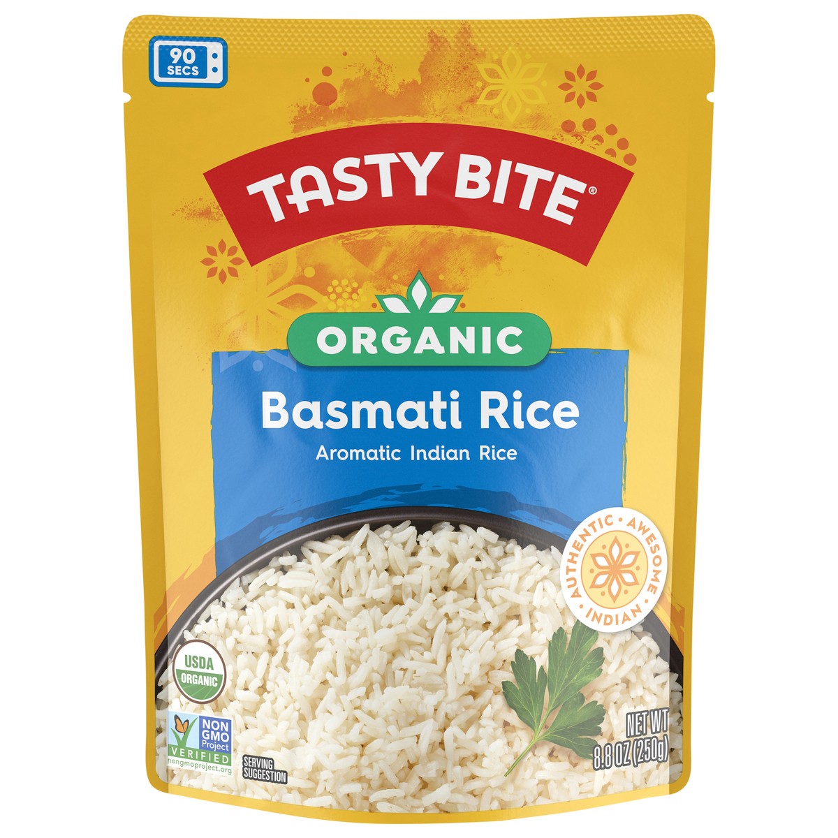 Fully cooked Basmati Rice from India. Plain. Simple. Organic. A perfect accompaniment for any of our Tasty Bite entrees.