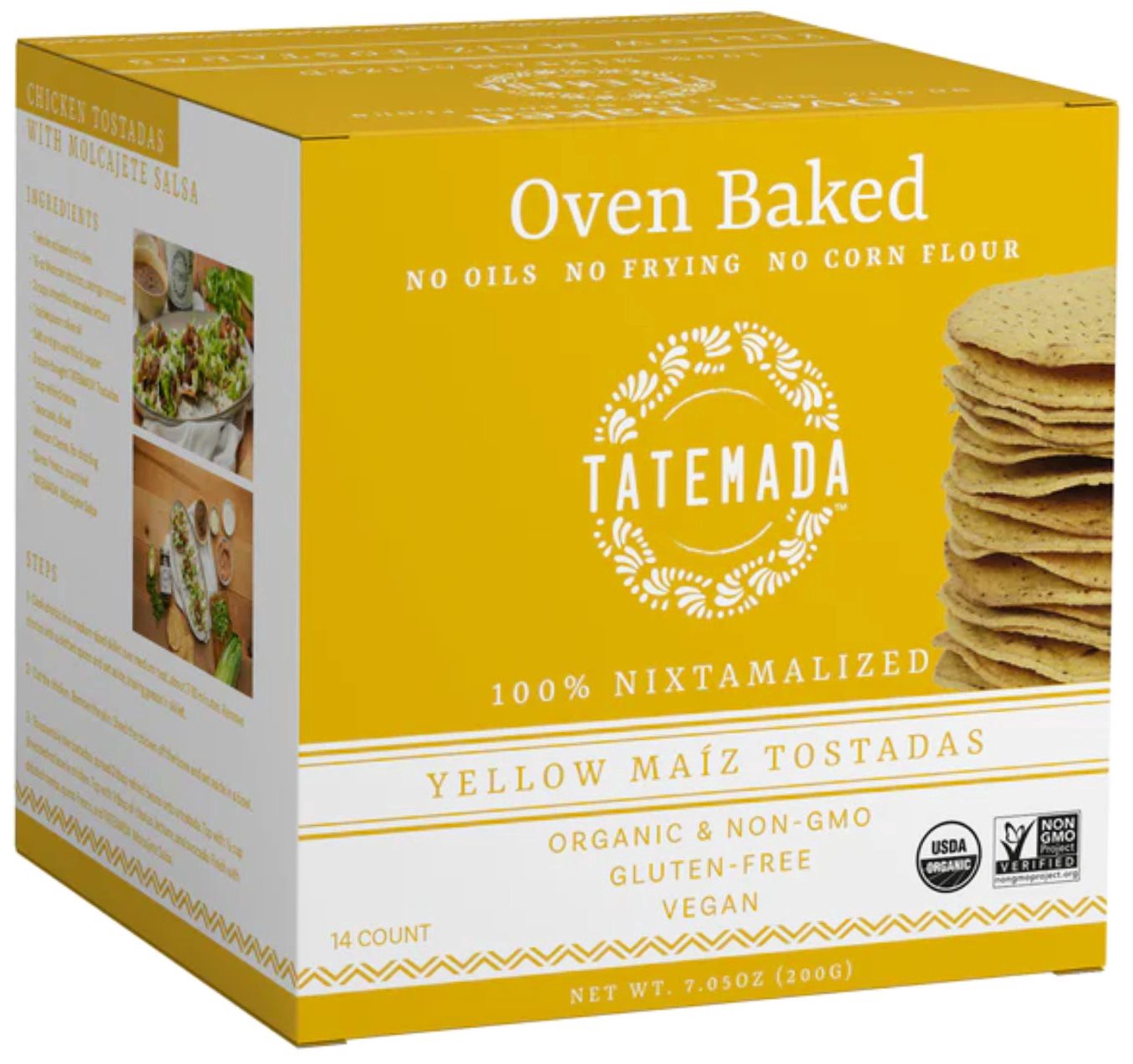 Make your favorite tostadas with these ready-to-eat tostadas that require no oil and no frying. These maiz yellow corn tostadas contain no corn flour.