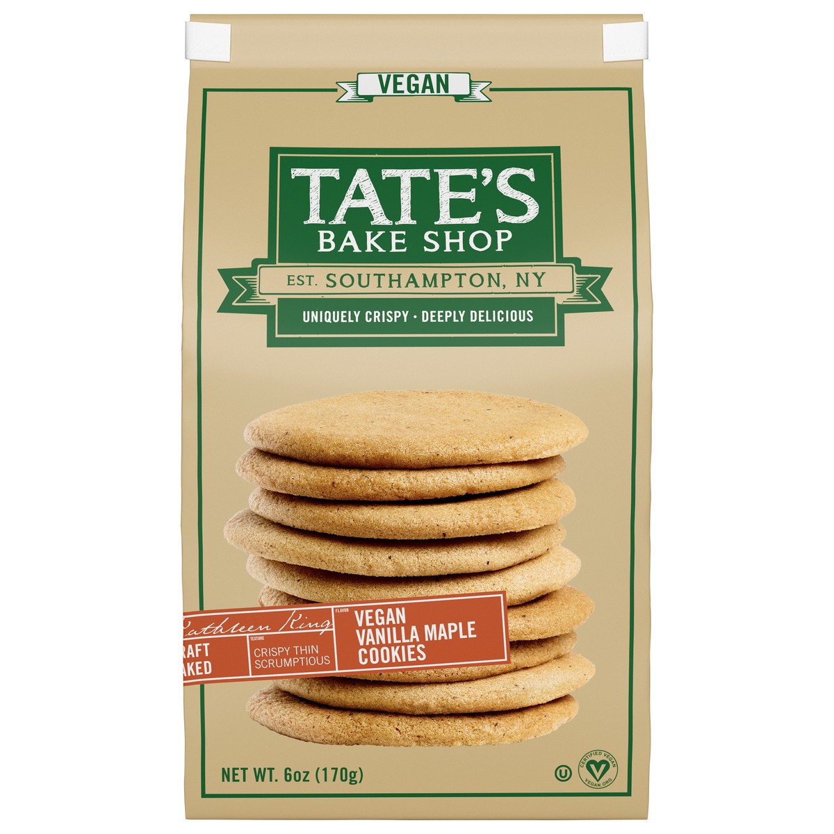 Treat yourself to a bake shop quality snack with Tate's Bake Shop Vanilla Maple Vegan Cookies. These crispy cookies are Certified Vegan with plant-based ingredients and certified OU Kosher. The new Ve…