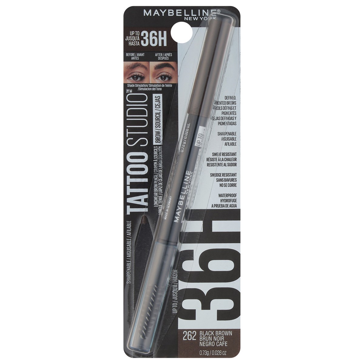 Shade simulation. Sharpenable. Sweat resistant. Smudge resistant. Waterproof. The Look: Defined, pigmented brows. Up to 36 Hr wear. Easily shape brows with tattoo studio longwear brow pigment pencil p…