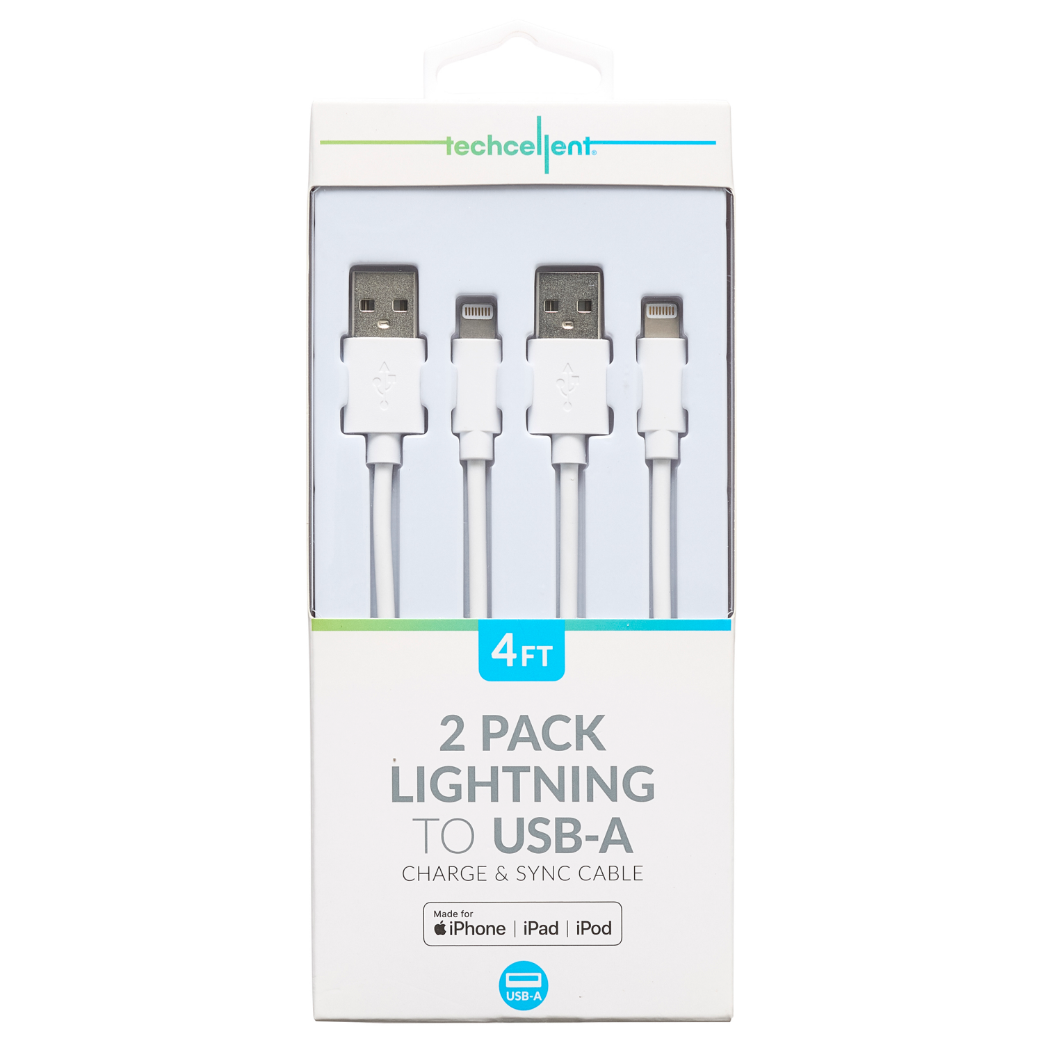 Techcellent 2Pack Lightning To USB-A Charge & Sync PVC Cable, 4ft WHITE