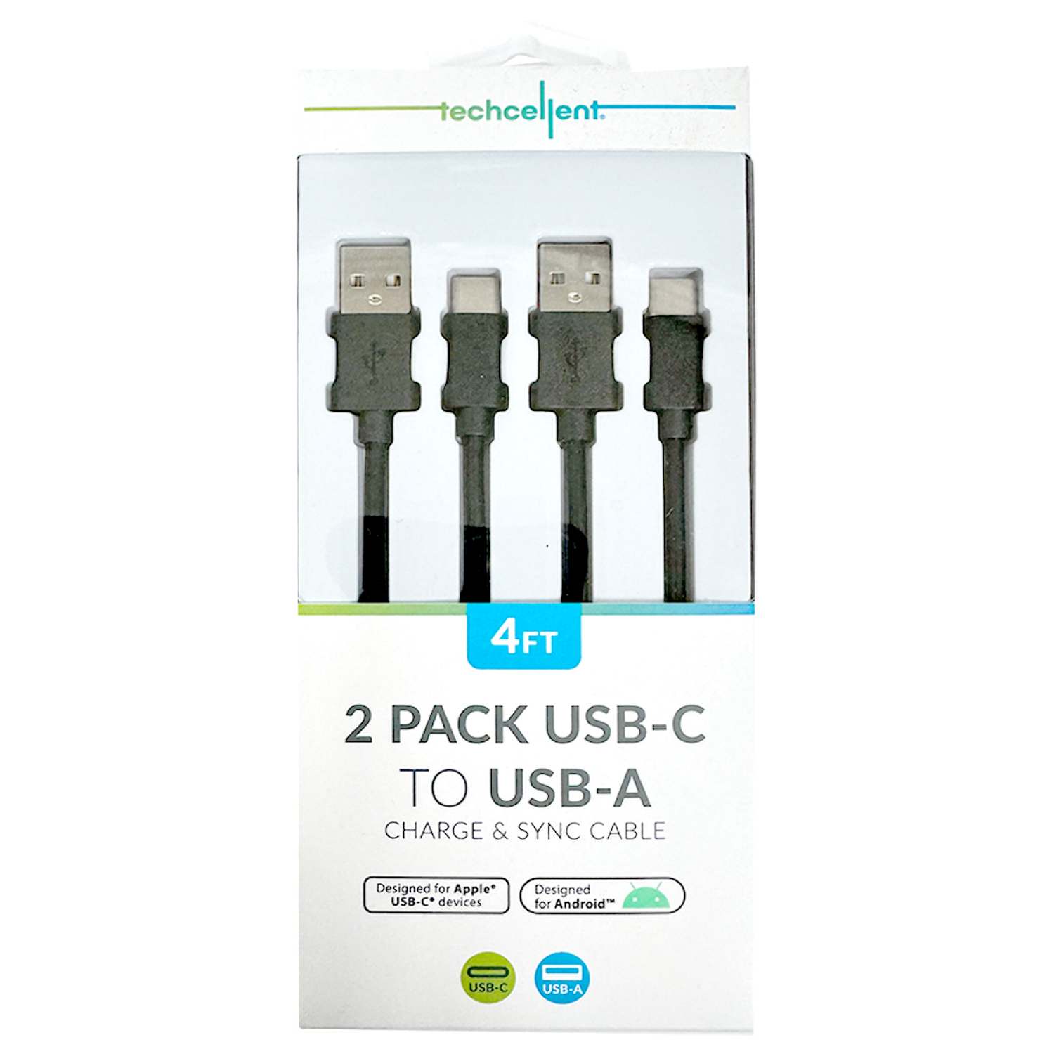 Techcellent 2Pack USB-A To USB-C Charge & Sync PVC Cable , 4ft Black