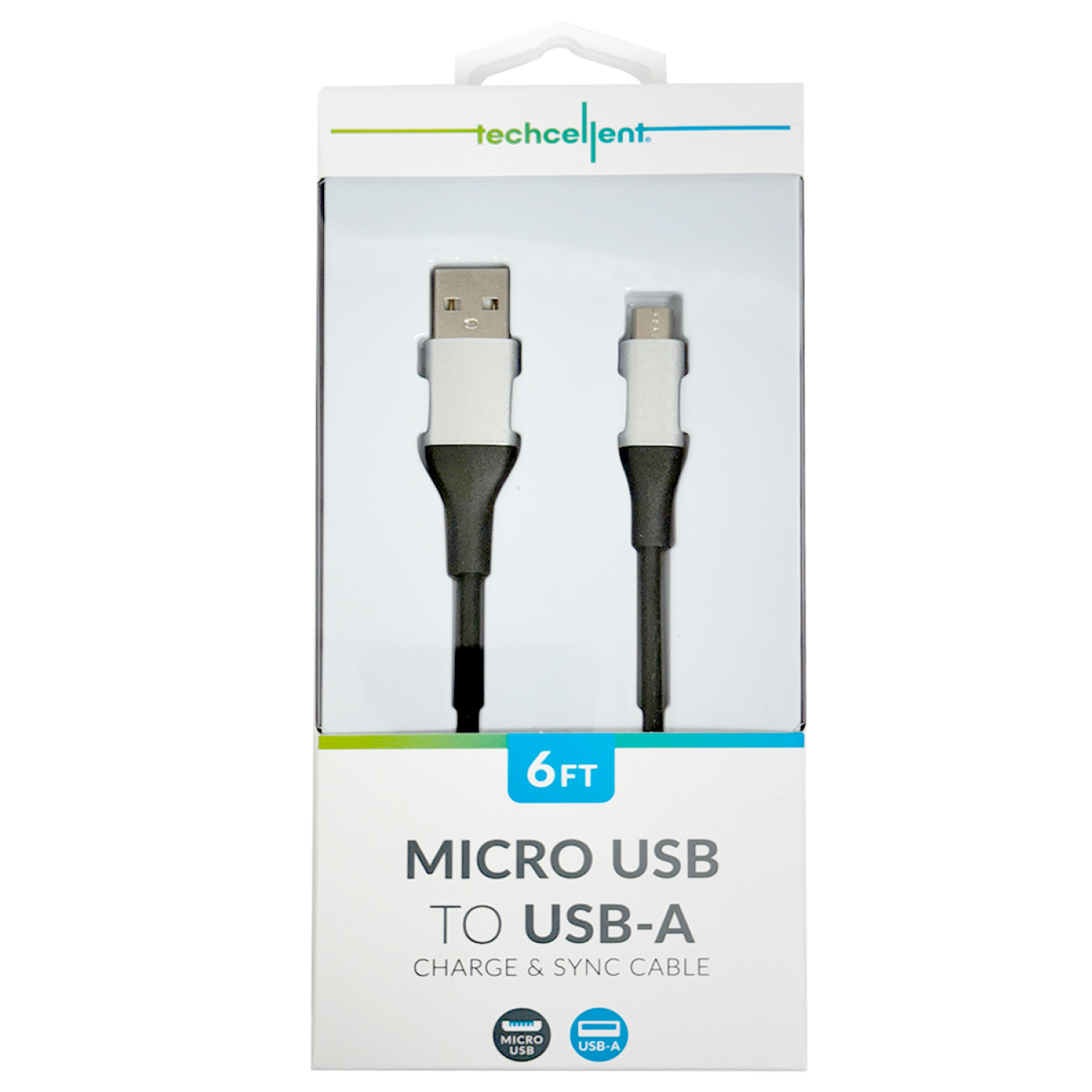 Techcellent USB-A To Micro Charge & Sync PVC Cable , 6FT, Black