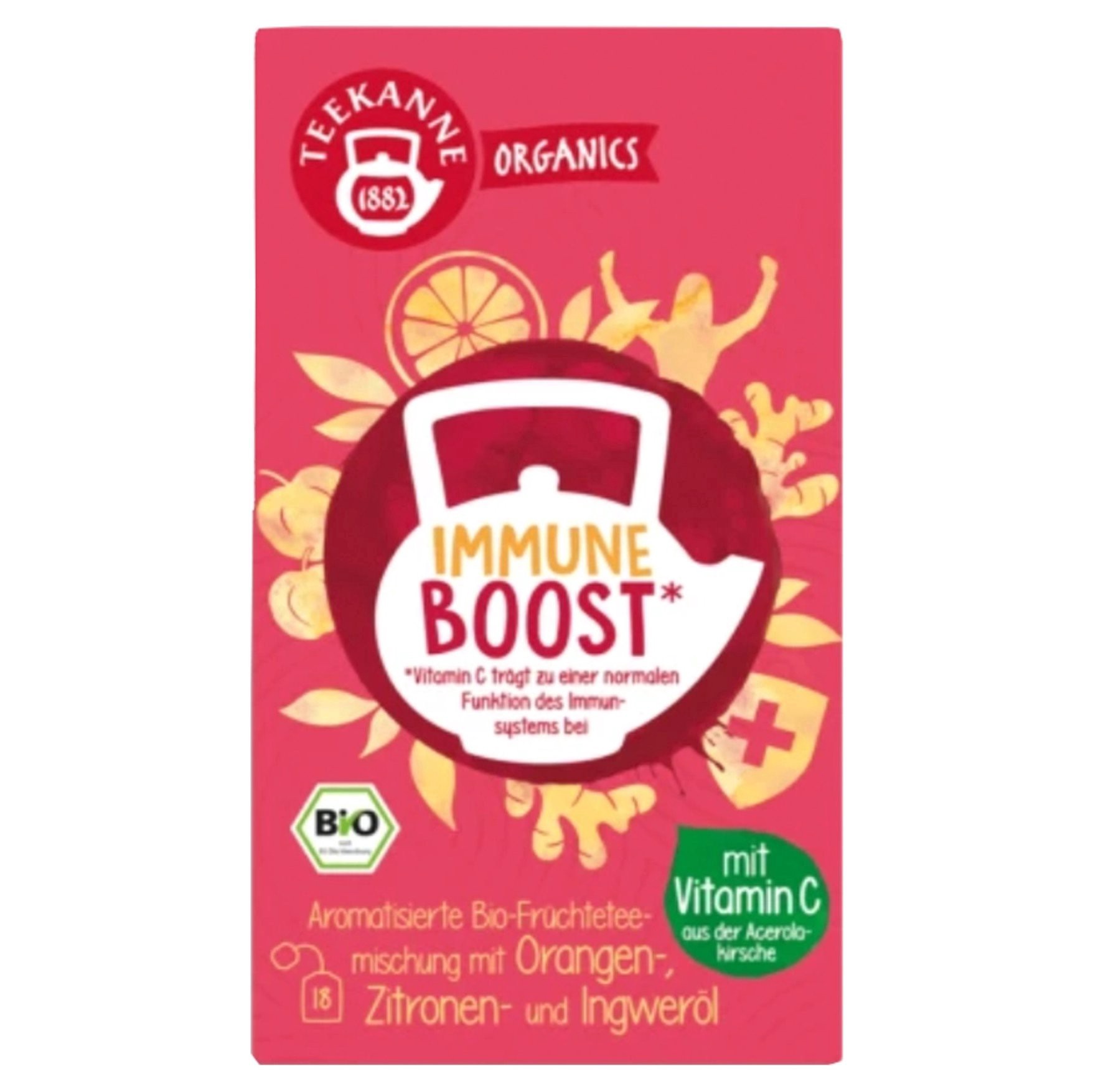 Boost your immune system with this flavored organic fruit infusion tea made with organic orange, lemon, and ginger oil. With Vitamin C from acerola cherry. Made by Teekanne, the famous tea manufacture…