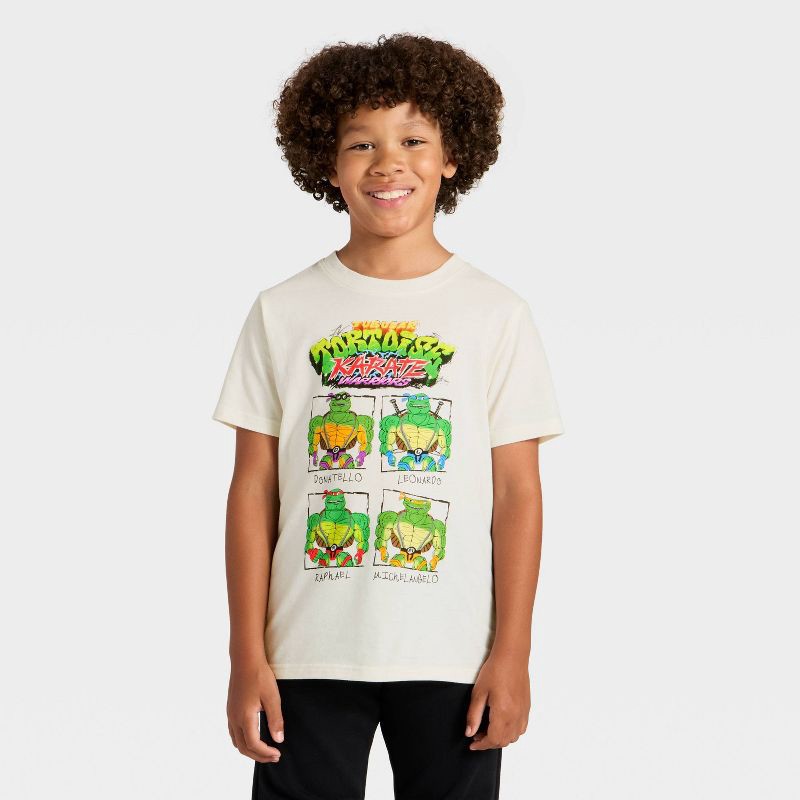 Step out in style with the Boys' Teenage Mutant Ninja Turtles Tortoise Karate Short Sleeve Graphic T-Shirt in Ivory. Featuring bold, action-packed artwork of the TMNT crew practicing their signature k…