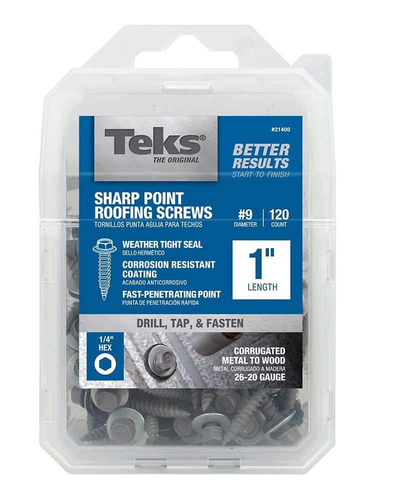 Ideal for attaching metal roofing panels to wood. Precise sharp point designed to drill, tap and fasten all in 1 motion. Self-sealing EPDM washer provides a waterproof seal in harsh outdoor environmen…