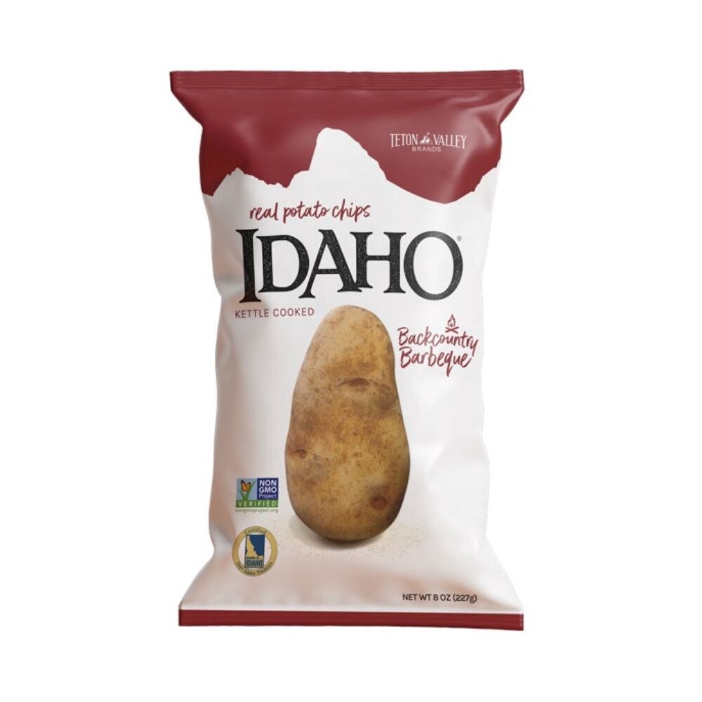 Kettle potato chips cooked in expeller pressed sunflower oil using Idaho® potatoes and a natural smokey BBQ seasoning blend. Light and flaky with deep Idaho® potato flavor. Natural product free from a…