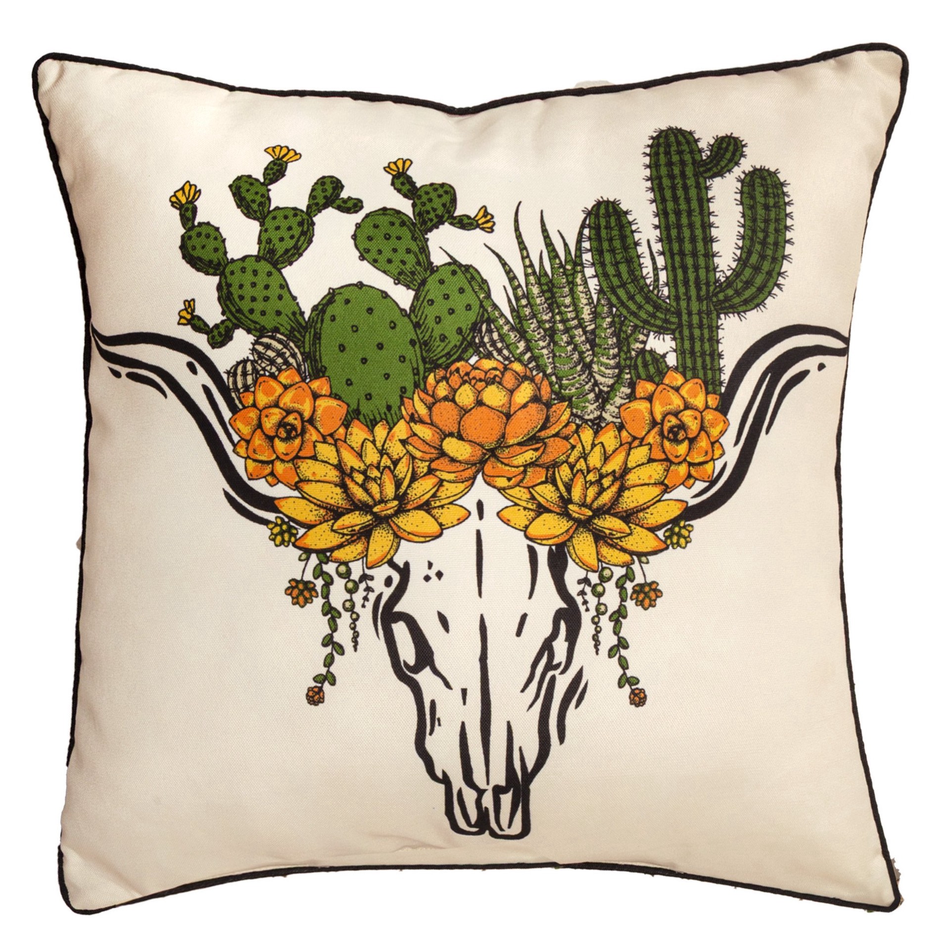 Add a bold statement to your home decor with the Texas Proud Cactus Skull Decorative Throw Pillow. Measuring 20" x 20", this eye-catching pillow features a striking cactus skull design, perfect for ad…