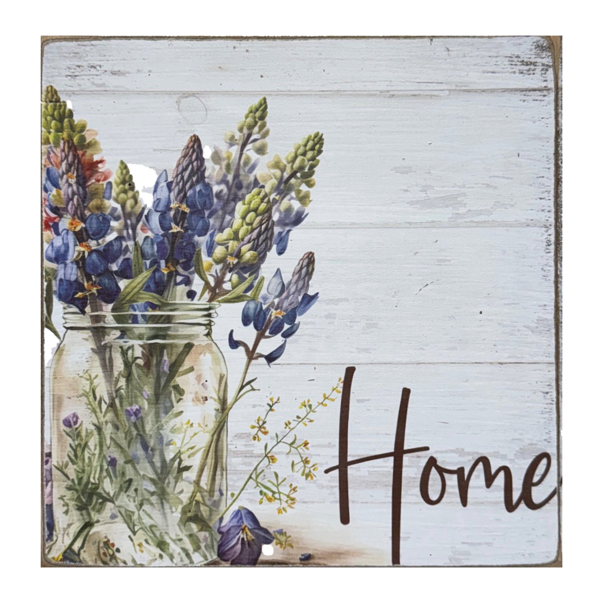 Texas Proud Home Jar of Bluebonnets Wooden Shelf Sitter