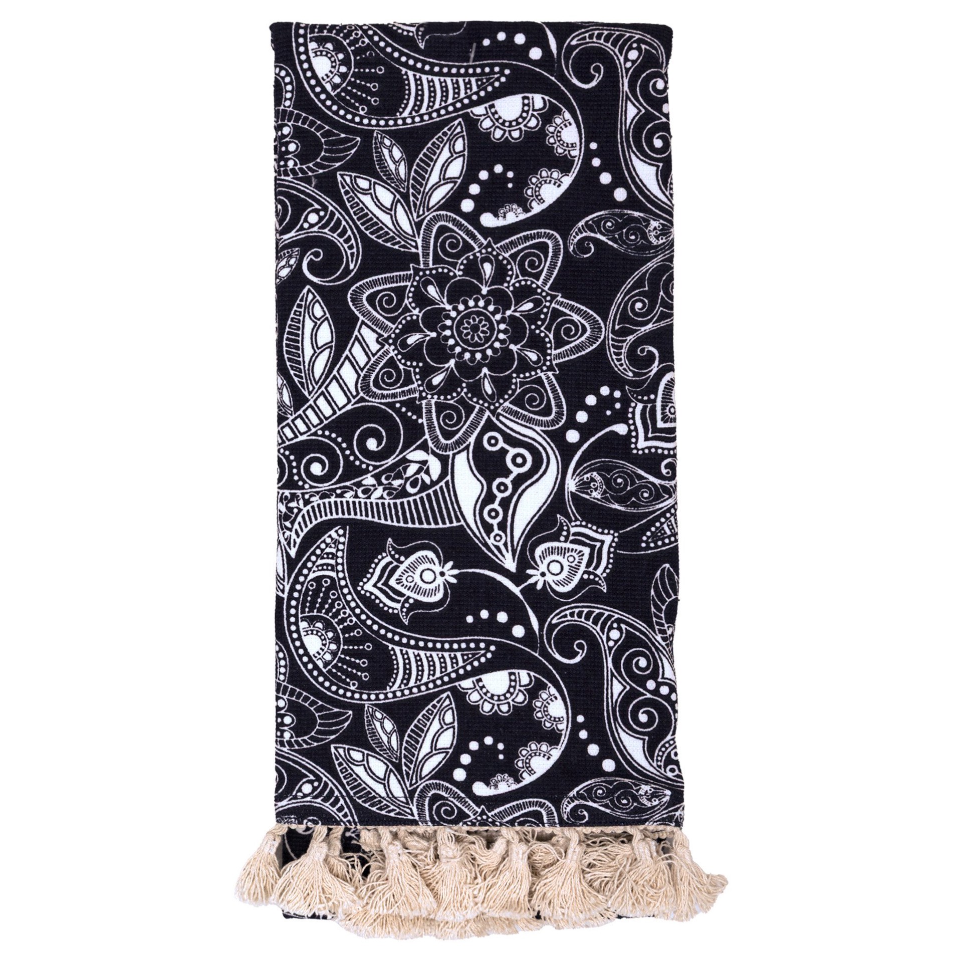 Tackle drying dishes, wiping countertops, or anything in between with the Blue Floral with Tassels Kitchen Towel, a stylish addition to our Texas Proud collection. Measuring 16 inches by 26 inches, th…