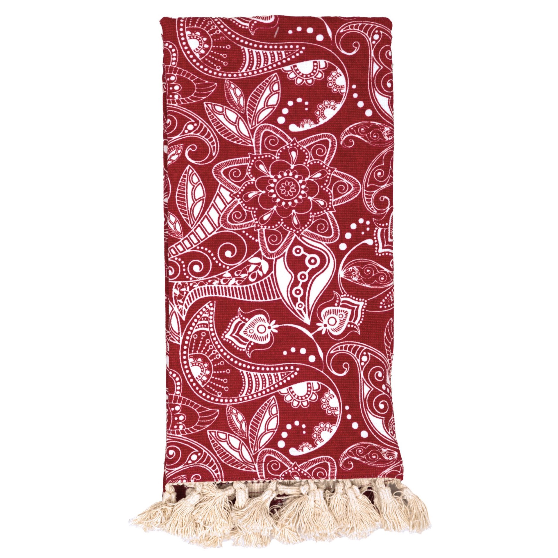 Tackle drying dishes, wiping countertops, or anything in between with the Red Floral with Tassels Kitchen Towel, a stylish addition to our Texas Proud collection. Measuring 16 inches by 26 inches, thi…