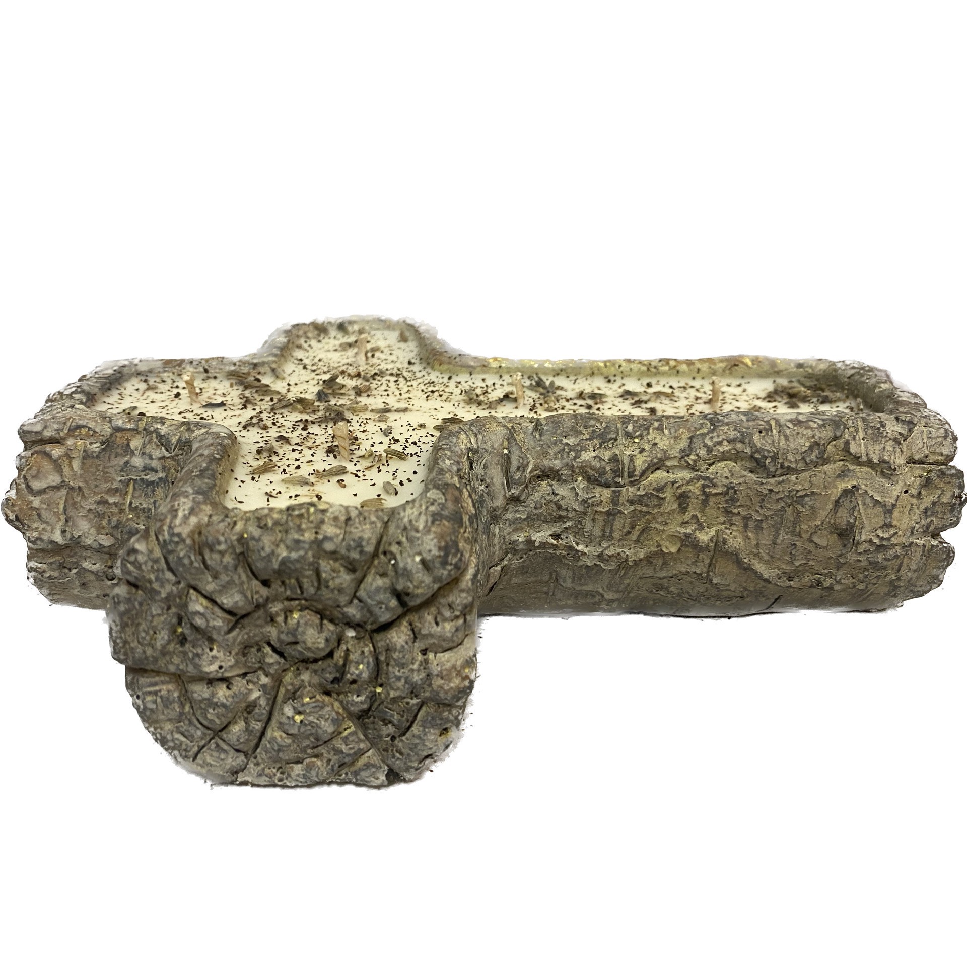 This beautiful Texas Proud candle is cement formed in the shape of a cross, detailed, textured and color-washed to resemble a wood log. Filled with 100% soy wax, the candle features a refreshing laven…