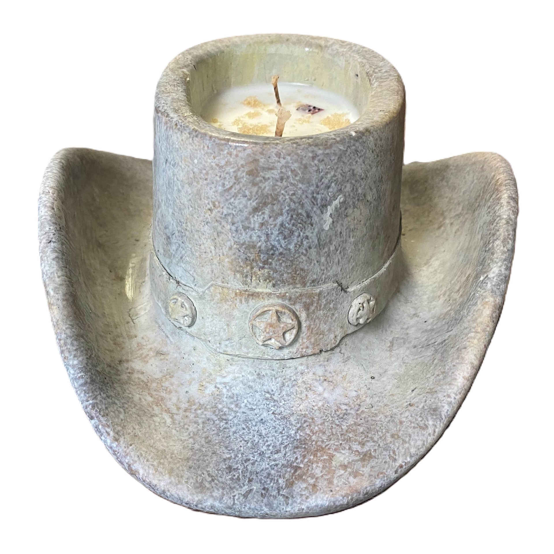 Texas Proud Rustic Swank Red Leather Scented Cowboy Hat Candle