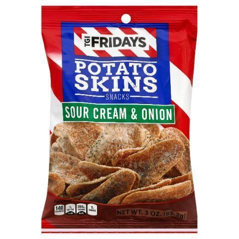 Per Serving: 140 calories; 1 g sat fat (5% DV); 200 mg sodium (8% DV); 1 g sugars. TGI Fridays Potato Skins Sour Cream & Onion flavor snack chips are made from real potatoes to give you thick, crunchy…