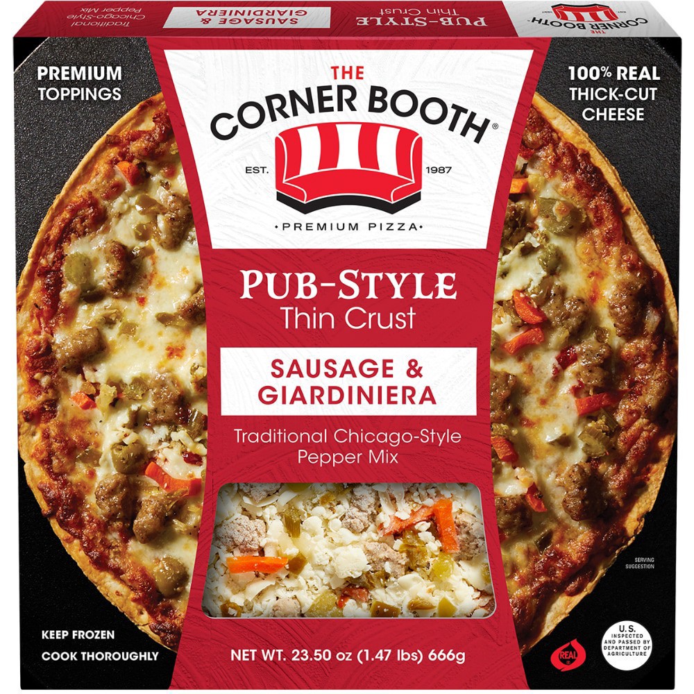 CORNER BOOTH SAUSAGE AND GIARDINERA PIZZA