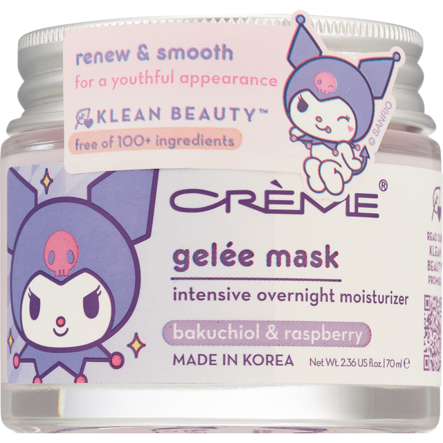 Enriched with Bakuchiol and raspberry, out Kuromi Klean Beauty Gelee Mask helps smooth fine lines for a renewed complexion. Use daily to promote youthful, bright skin.