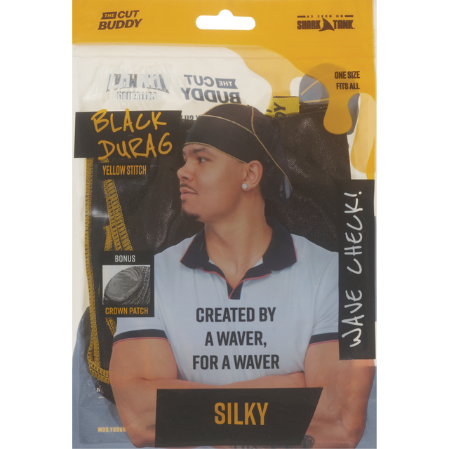 The Cut Buddy Nick Wavy Collection Black/Yellow Silky Durag - Introducing The Nick Wavy Collection Silk Durag, the ultimate accessory for wavers designed by the master of waves himself, Nick Wavy. Cra…