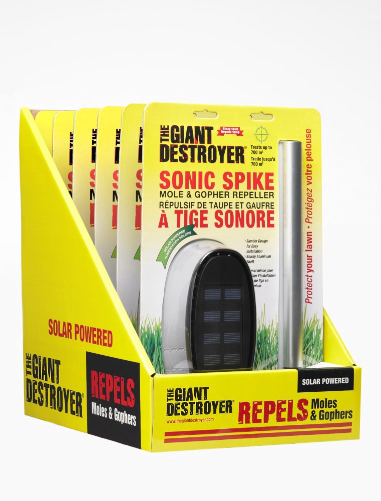 The Giant Destroyer Solar Repeller Sub Brand: Sonic SpikeA nimal Type: Gophers and Moles Product Type: Sonic Pest Repeller Spike Indoor or Outdoor: Outdoor Product Form: Spike Treatment Coverage Area:…
