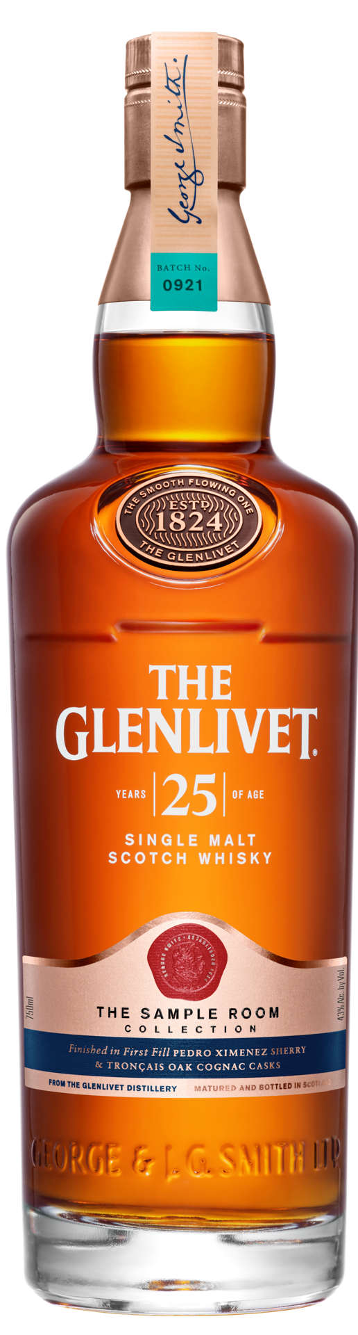 Scotland - Speyside - 43% - The Glenlivet 25 expression is created by selectively finishing whisky across first-fill Pedro Ximenez Sherry and Troncais Oak Cognac casks. These prestigious casks bring i…