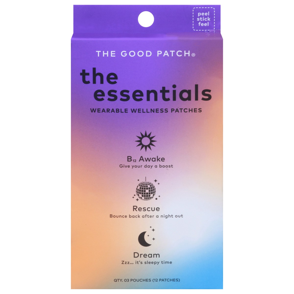 Get in sync with The Essentials Set from The Good Patch, a plant-powered wearable wellness patch set for whatever the week throws your way. The Essentials Set includes 4 B12 Awake patches, 4 Dream pat…