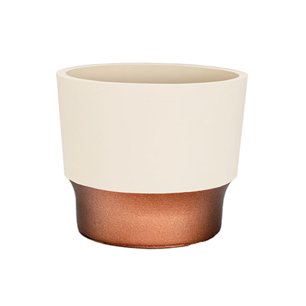 Durable resin succulent planter featuring the look of ceramic and concrete without the fragility. Compatible with drop-in grower containers. Includes a drain hole for proper succulent care.