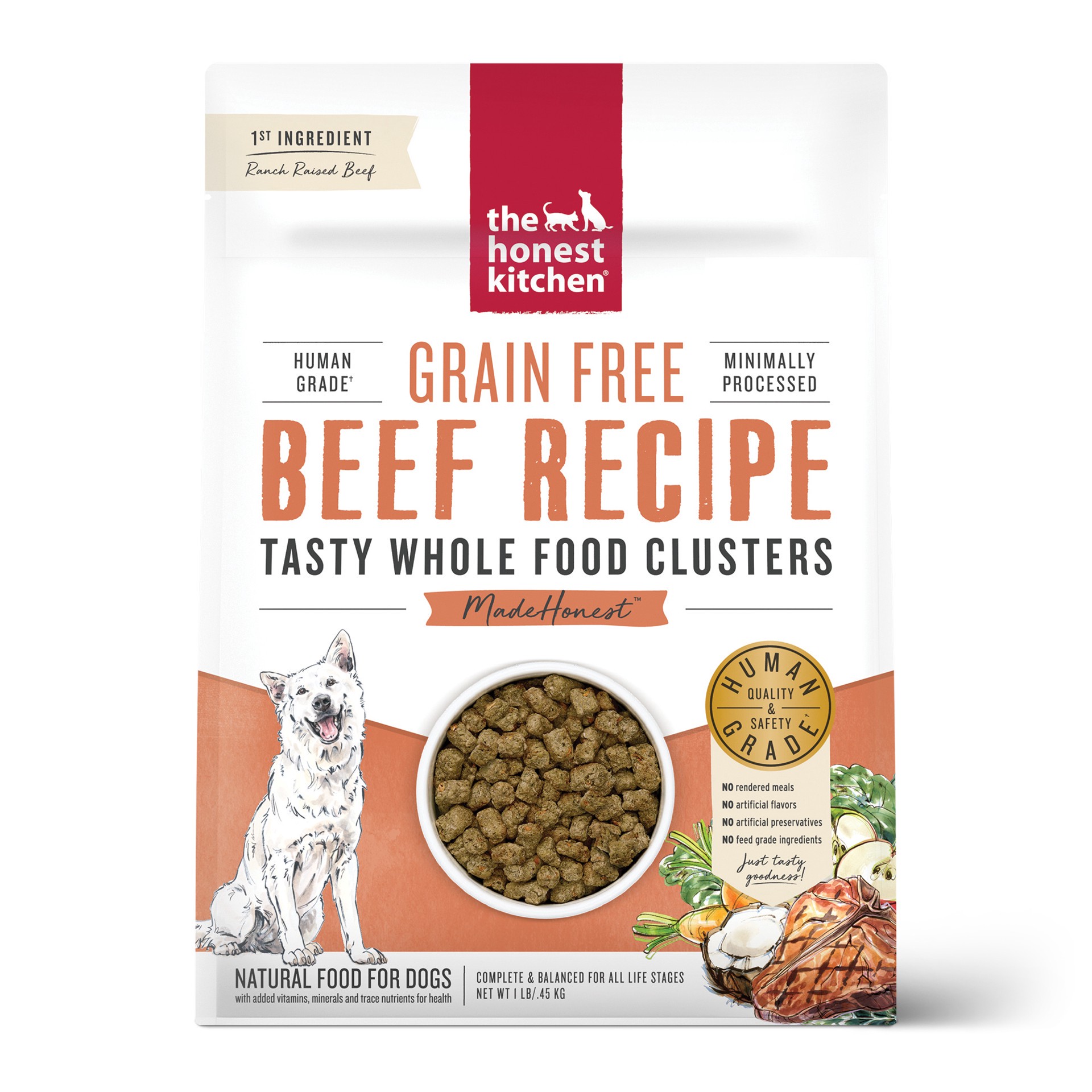 slide 8 of 8, The Honest Kitchen Whole Food Clusters Whole Food Clusters Grain Free Beef Dry Dog Food, 1 lb Trial Pouch, 1 lb