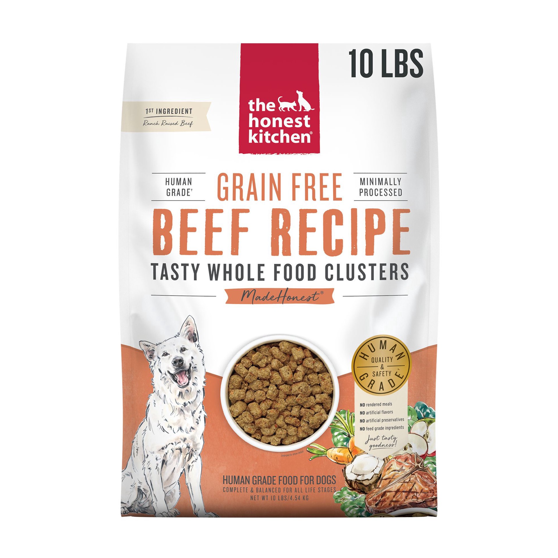Beef, potatoes, peas, beef liver, lentils, carrots, ground flaxseed, eggs, broccoli, pumpkin, apples, salmon oil, natural beef flavor, coconut oil, kale, chia seed, minerals [tricalcium phosphate, sod…
