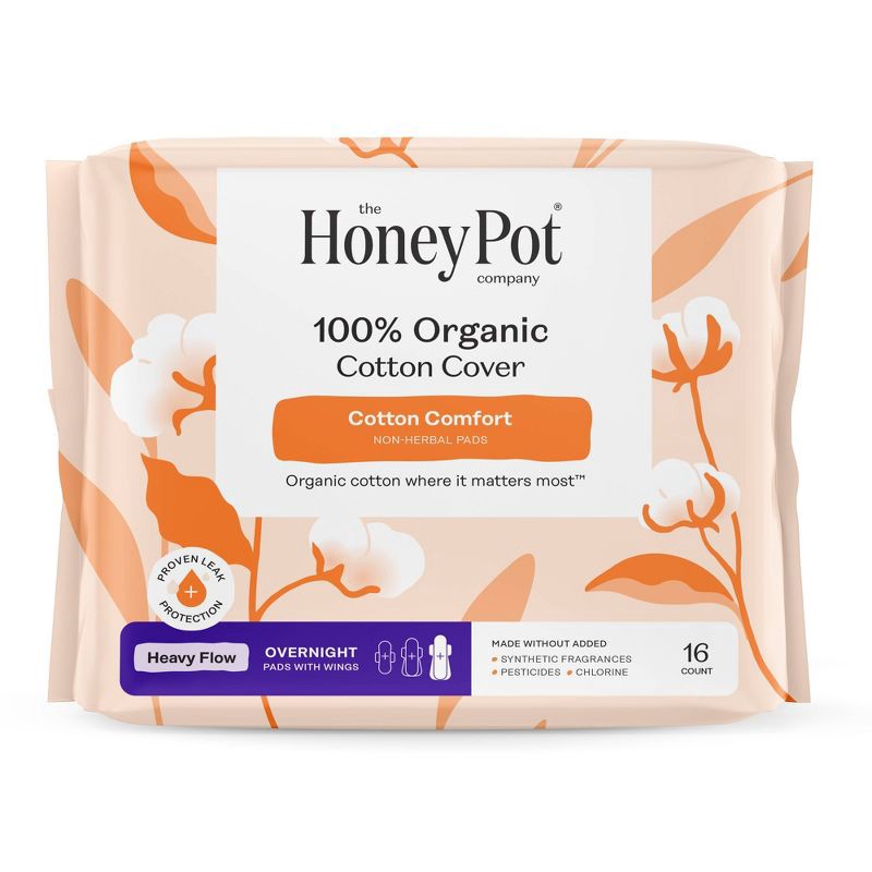 - The Honey Pot Company, Non-Herbal Overnight Heavy Flow Pads, Organic Cotton Cover, 16 ct.