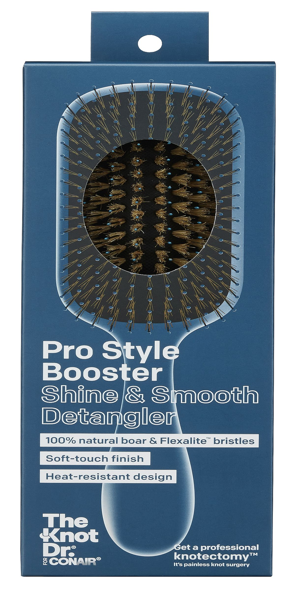 Perfect for wet or dry hair, the Pro Style Booster Shine Smooth Detangler from The Knot Dr. for Conair features 100 natural boar and Flexalite bristles for shiny, knotfree results. Blowdryerfriendly …