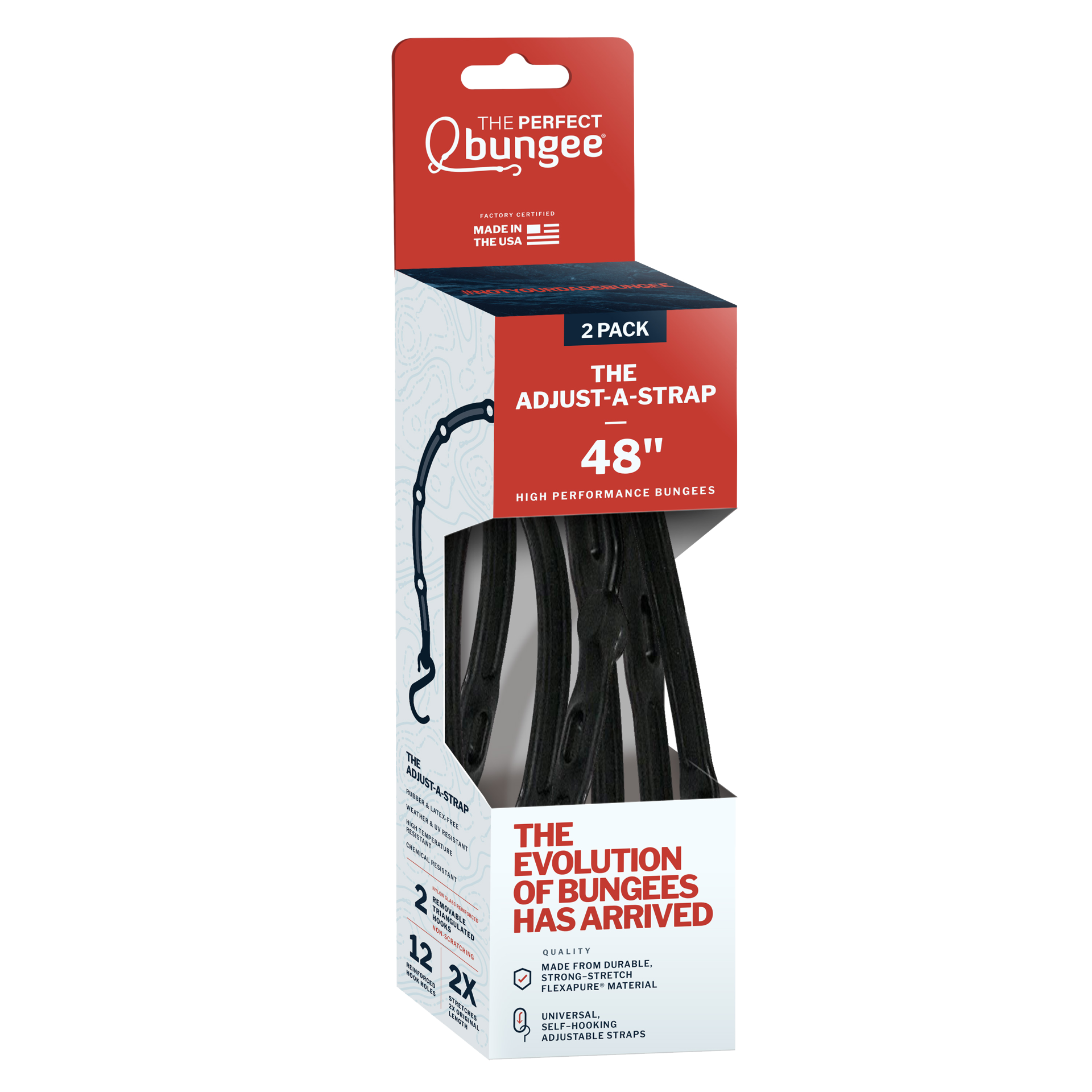 The brand new 48inch "Adjust-A-Strap" by The Perfect Bungee This premium adjustable length bungee cord features 12 reinforced holes to accommodate various load sizes and coverage, plus 2 removable non…