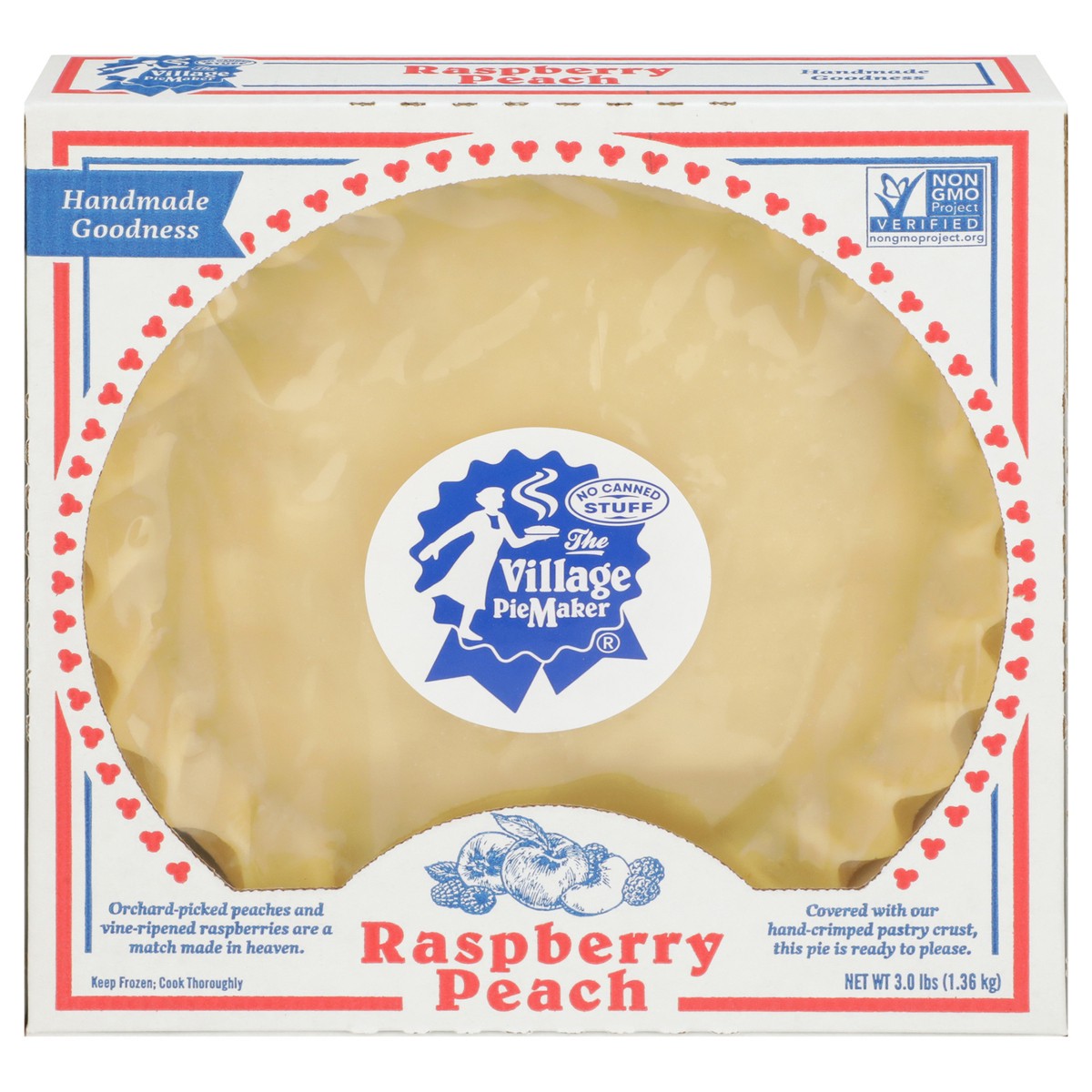 Sliced Peaches (Peaches, Ascorbic Acid and Citric Acid), Wheat Flour, Sugar, Red Raspberries, Palm Oil, Water, Butter (Pasteurized Cream [Milk], Salt), Cornstarch, Vinegar, Sea Salt, Lemon Juice, Nonf…