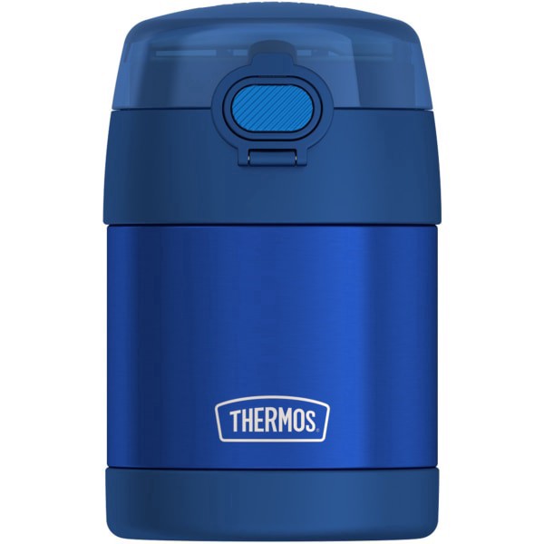 slide 2 of 3, Thermos™ FUNtainer 10 Oz Stainless Steel Food Jar With Snack Top And Spoon, 5-9/16""H x 3-1/2""W x 3-3/4""D, Blue, 10 oz